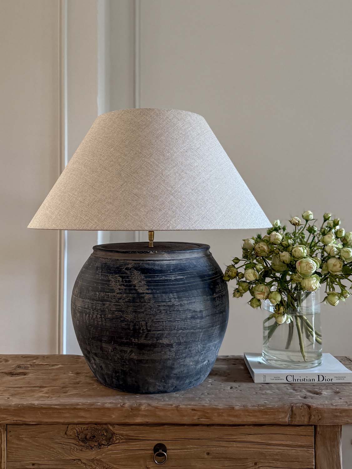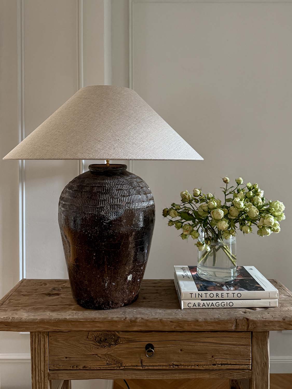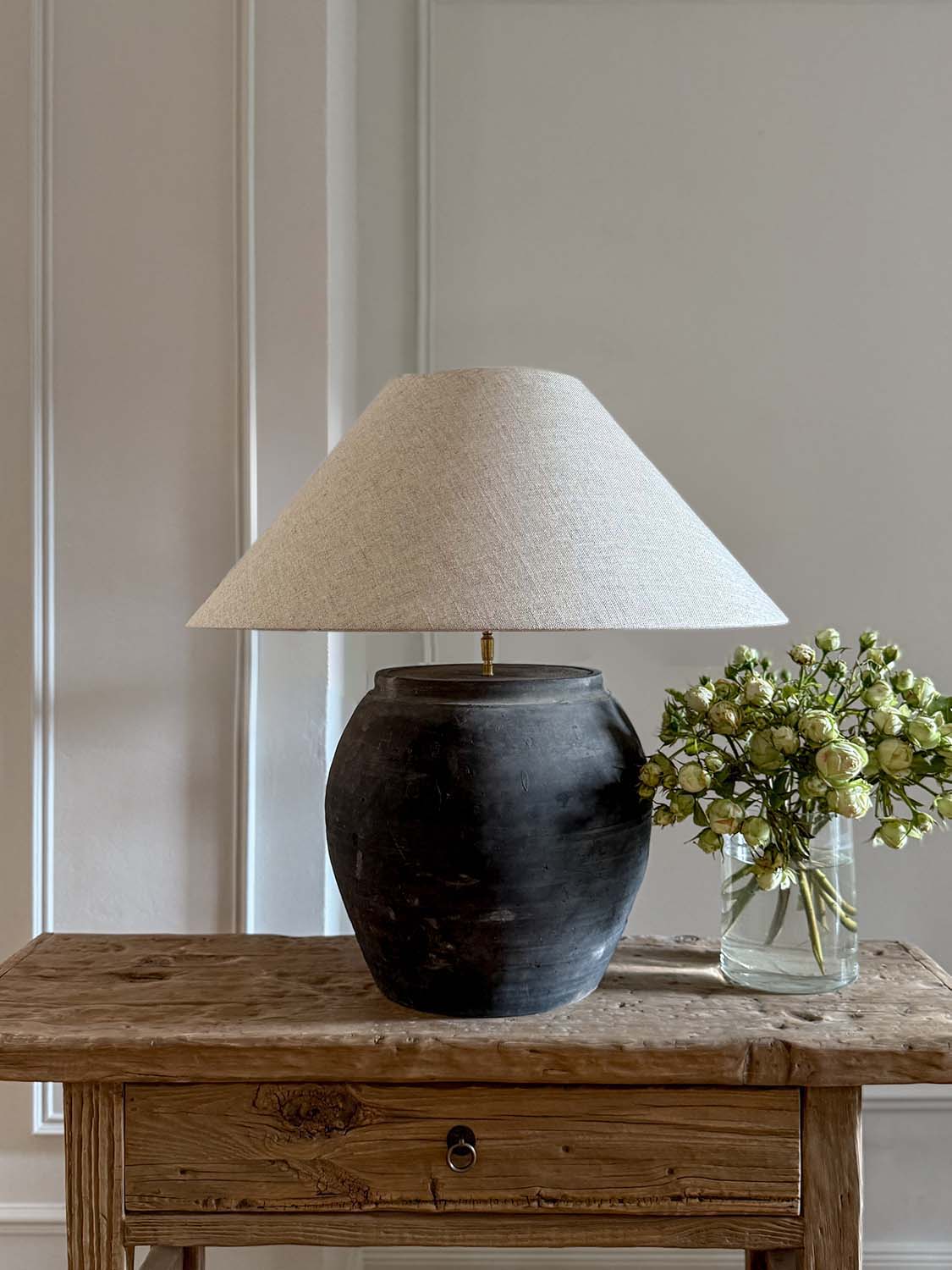 Lampe Terracotta mit antikem Keramikfuß