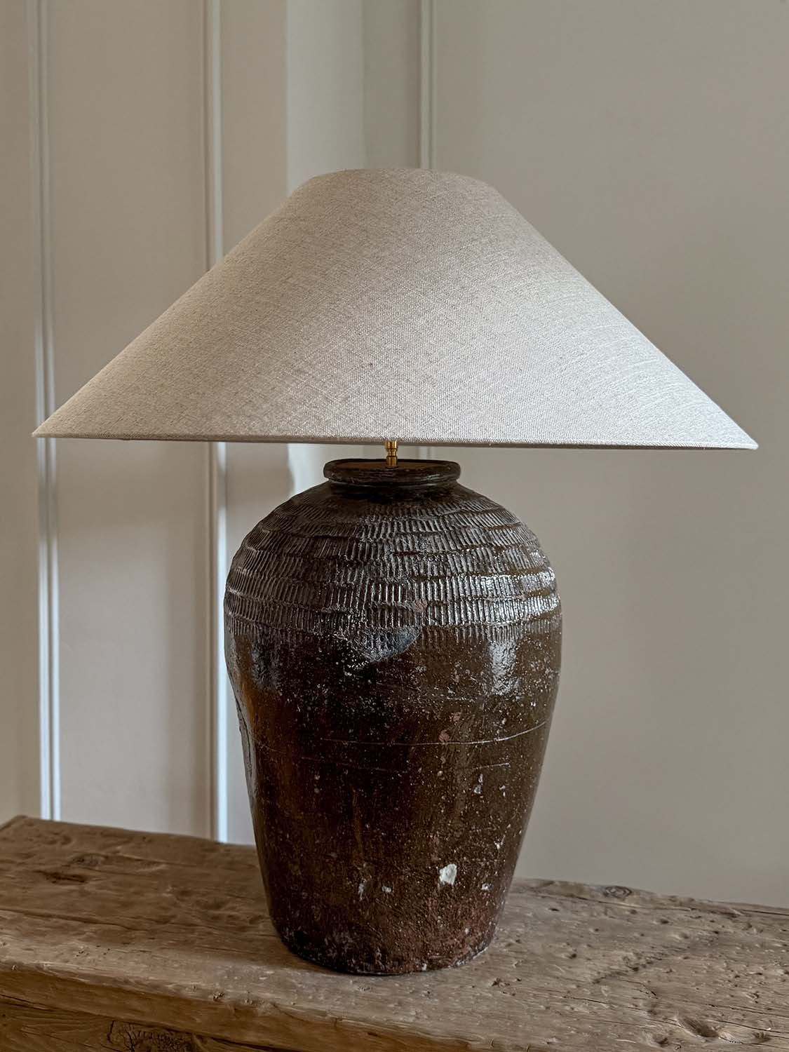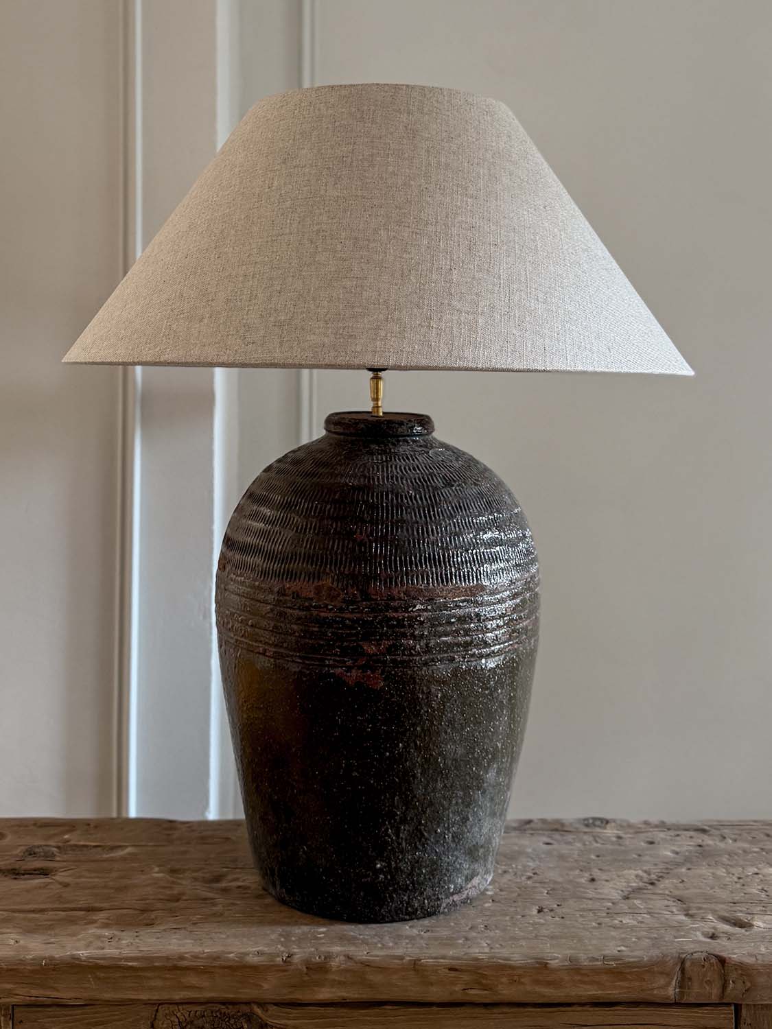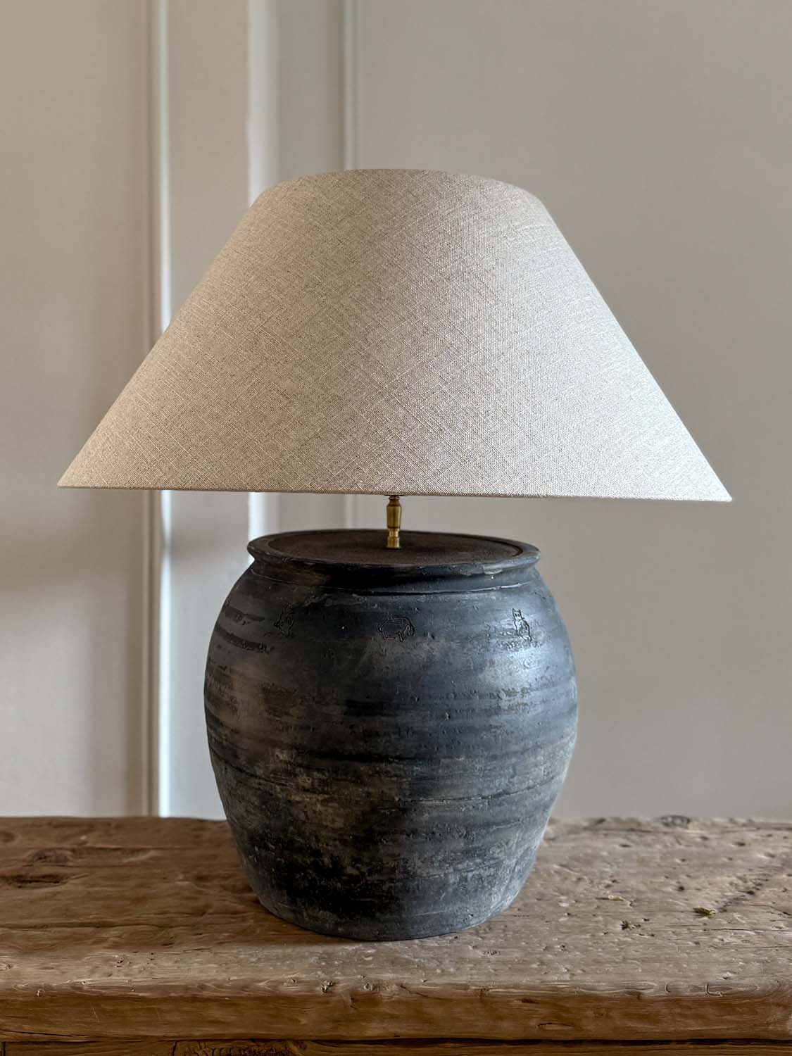 Lampe mit antikem Keramikfuß
